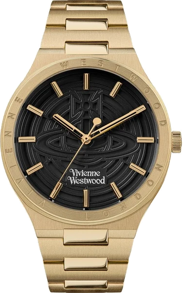 Montre Vivienne Westwood Eltham VV249BKGD bracelet doré en acier cadran noir