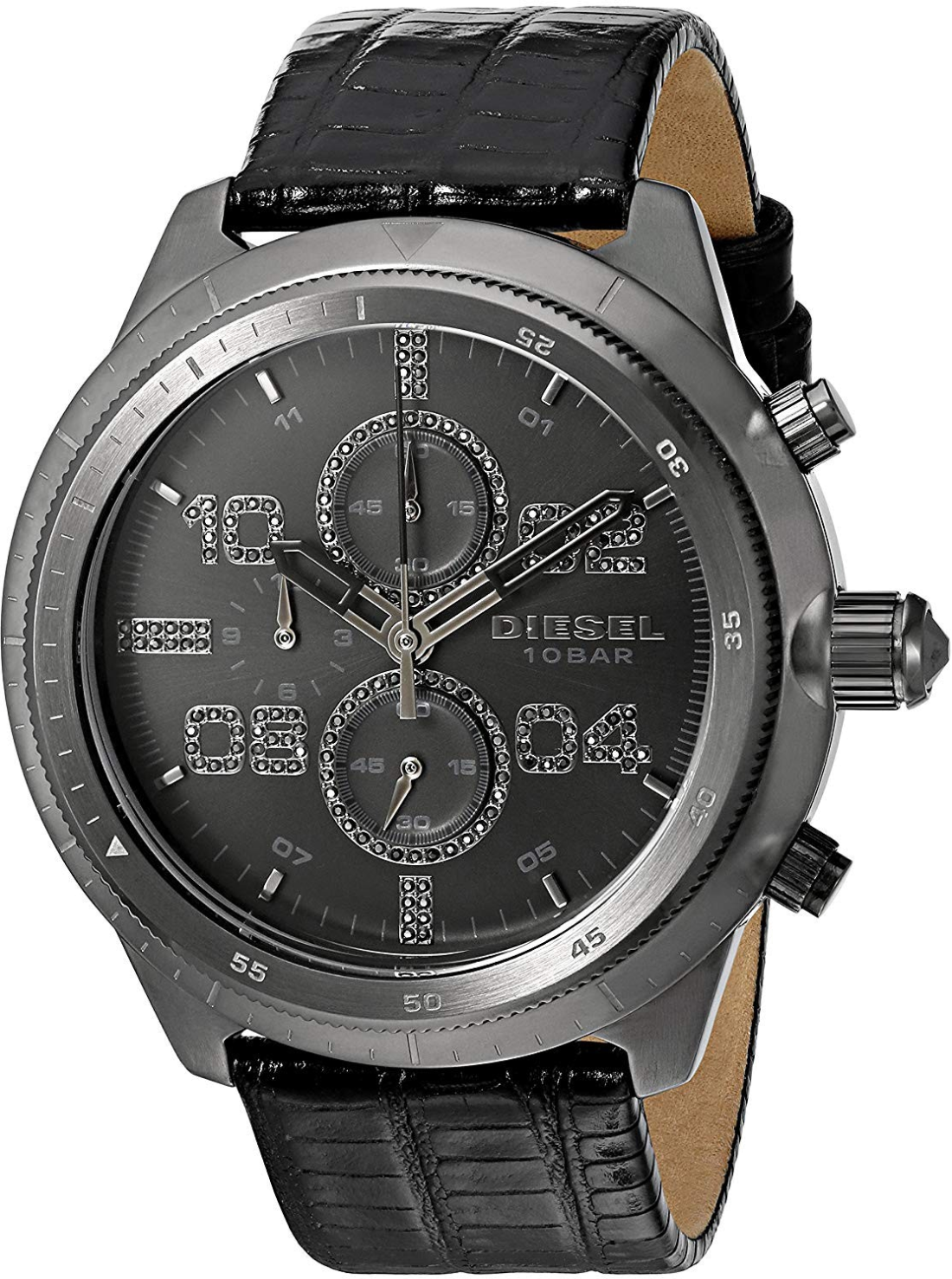 La Diesel DZ4437 est une montre qui allie fonctionnalité et style. Elle se distingue par un boîtier de 48mm en acier inoxydable, offrant une résistance optimale et un aspect moderne. Le cadran noir affiche des éléments en analogique, avec des aiguilles bien définies, garantissant une lisibilité aisée. Elle intègre également un bracelet en cuir de 24mm, soulignant un design à la fois élégant et robuste. Ce modèle est animé par un mouvement quartz de précision et comprend un chronographe, ajoutant une touche de sportivité à son apparence.